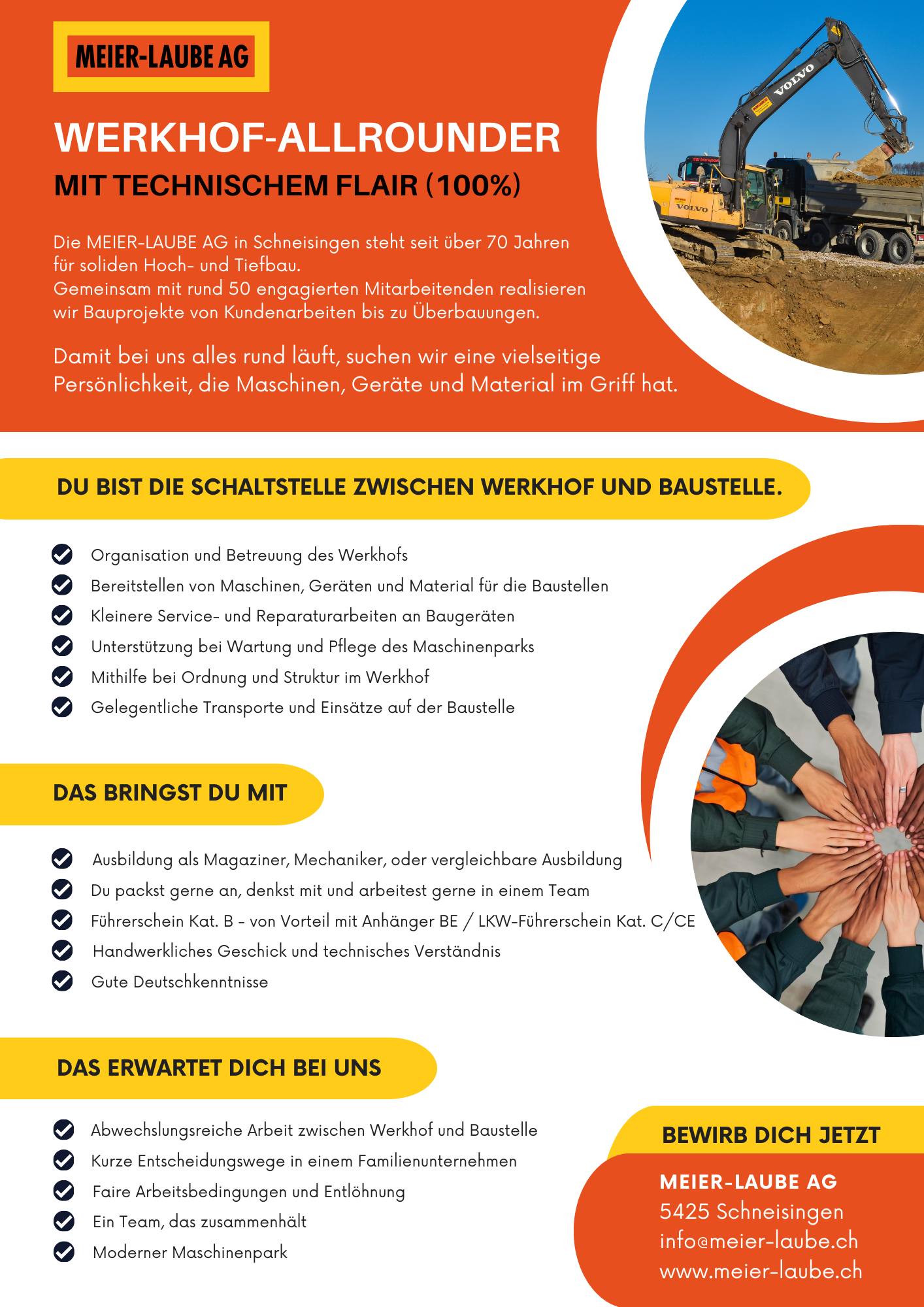 Vollzeit bei Meier-Laube AG Bauunternehmung in CH-5425 Schneisingen
