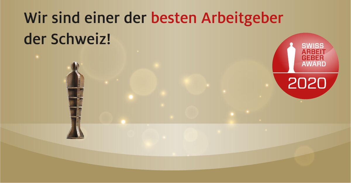 Dank der ausgezeichneten Bewertungen unserer Mitarbeitenden haben wir am Swiss Arbeitgeber Award 2020 den 7. Platz, im Jahr 2021 den 8. Platz, im Jahr 2023 den 9 Platz und im Jahr 2024 den 5 Platz in der Kategorie 50-99 Mitarbeitende erreicht.